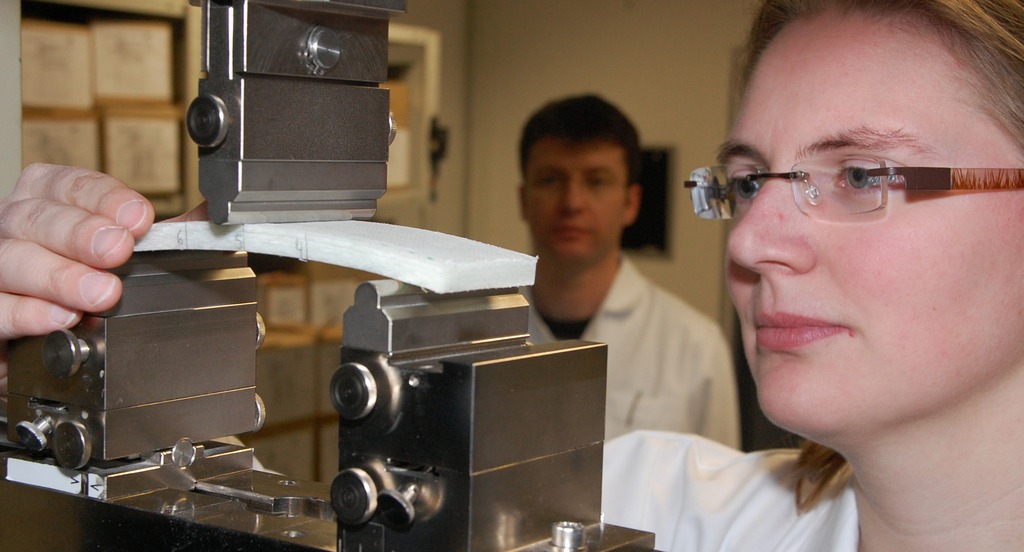 Under pressure: An IKT tester determines flexural strength at the point when a liner sample ruptures.
